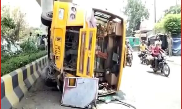 स्कूल में पढ़ने के लिए गए बच्चों को वापस लेने के लिए जा रही स्कूली बस तेज रफ्तार होने की वजह से अनियंत्रित होकर पलट गई