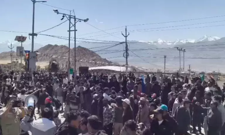 बुधवार को लेह में केंद्र शासित प्रदेश लद्दाख को पूर्ण राज्य का दर्जा देने की मांग को लेकर छात्रों का एक बड़ा हुजूम सड़कों पर उतर पड़ा। प्रदर्शन कर रहे यह स्टूडेंट सोशल एक्टिविस्ट सोनम वांगचुक के समर्थन में विरोध प्रदर्शन कर रहे थे।