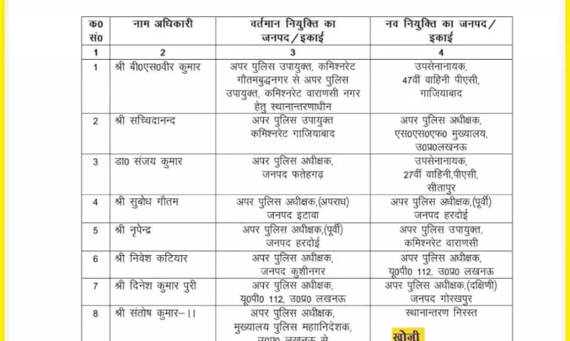 बीती रात उत्तर प्रदेश सरकार ने एक साथ 23 अपर पुलिस अधीक्षक स्तर के अधिकारियों के तबादले कर दिए हैं ।