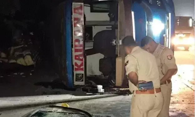 बताया जा रहा है कि बस के ड्राइवर को नींद की झपकी आ गई थी, जिसके चलते बेकाबू हुई बस डिवाइडर से टकराकर पलट गई।