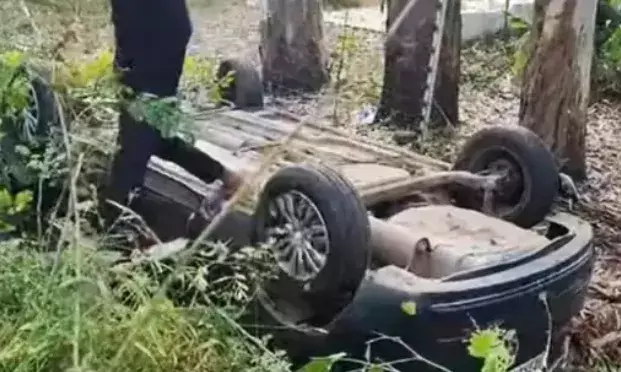 नीलगाय को बचाने के चक्कर में हाईवे पर तेज रफ्तार कार खेत में पलटी