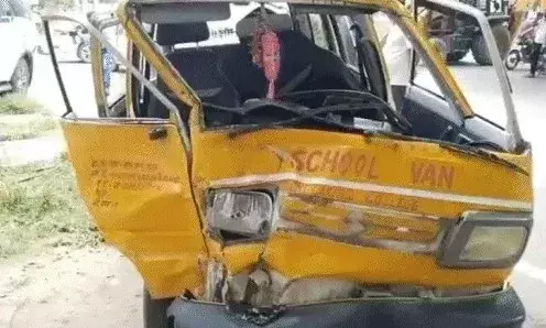 तेज रफ्तार फॉर्च्यूनर ने स्कूल वैन में मारी टक्कर-कालेज की दो छात्राएं