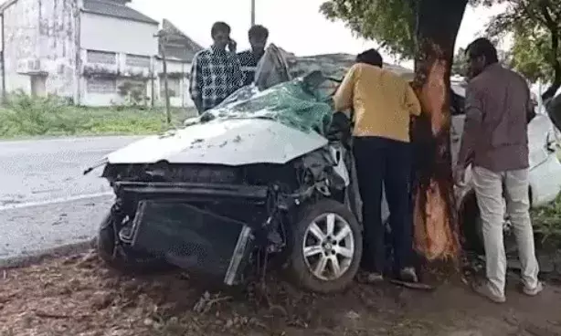 सड़क पर फिसली कार पेड़ से भिडी- उडे परखच्चे- 3 डॉक्टरों की मौत