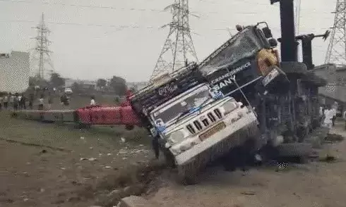 यह हादसा उस समय हुआ जब क्रेन भारी पिलर को शिफ्ट करने का काम कर रही थी, इसी दौरान अचानक से संतुलन बिगड़ा और पिलर शिफ्ट कर रही क्रेन पलट गई।