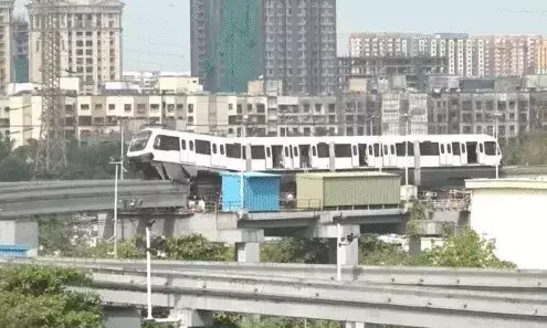 डिरेल होकर मोनोरेल हवा में लटकी- ट्रायल के दौरान हुआ हादसा