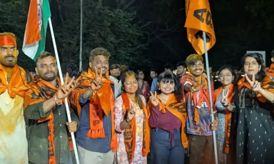 भारत की राजधानी दिल्ली में हुए दिल्ली यूनिवर्सिटी के चुनाव में शानदार जीत हासिल कर भगवा लहराने वाली अखिल भारतीय विद्यार्थी परिषद को अब हैदराबाद सेंट्रल यूनिवर्सिटी के छात्र संघ चुनाव में भी जबरदस्त कामयाबी हाथ लगी है।