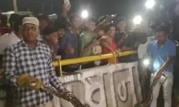 अजगर को पकड़कर अपने कब्जे में लिया तो स्थानीय लोगों ने राहत की सांस ली।