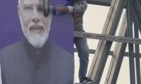 शुक्रवार को इंडिया यूथ कांग्रेस के सोशल मीडिया फेसबुक अकाउंट पर हरियाणा में पानीपत, सिरसा और नूंह आदि कई इलाकों में लगे प्रधानमंत्री नरेंद्र मोदी और हरियाणा के मुख्यमंत्री नायब सैनी के पोस्टरों पर कालिख पोतता हुआ एक व्यक्ति दिखाई दे रहा है।