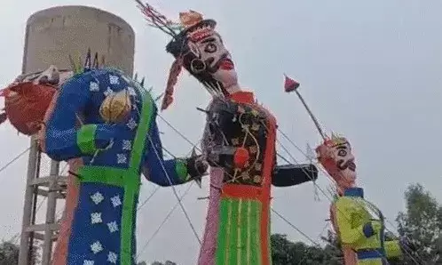 दहन से पहले ही टूटी रावण एवं कुंभकरण की गर्दन- लटकी एक तरफ