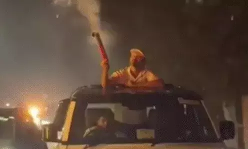 मथुरा। राष्ट्रीय लोकदल के एमएलसी ने भौकाल दिखाने के लिए गाड़ी के सनरूफ से निकलकर आतिशबाजी की, इस दौरान MLC की गाड़ी रिहाईशी इलाके से होकर गुजर रही थी।
