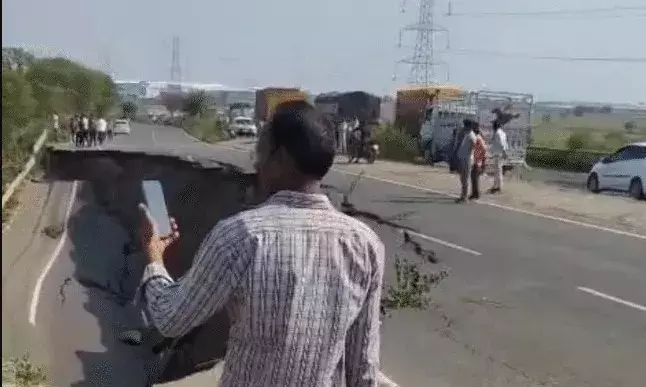 जमीन में समाई सड़क-100 मीटर जमीन में धंसी- एक लेन का ट्रैफिक..