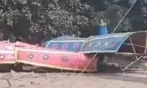 बारिश के मौसम के बीच चली तेज हवाओं ने दशहरा उत्सव के लिए तैयार कर खड़े किए गए रावण, कुंभकरण और मेघनाथ के पुतलों को अपनी चपेट में ले लिया। भगवान श्री राम के हाथों मरने से पहले ही रावण और उसके परिवार के लोगों के पुतले जमीन पर गिर गए।