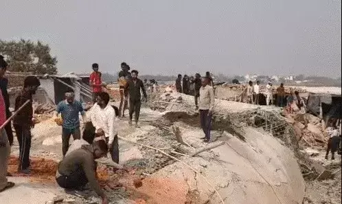 तीन मंजिला मकान का लेंटर गिरने से दबे मजदूर-3 को निकाला बाहर