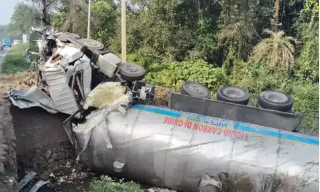 रविवार को मिल रहे घटनाक्रम के मुताबिक जनपद बिजनौर के अफजलगढ़ थाना क्षेत्र में मेघपुर मोड पर हुए बड़े हादसे में 32 वर्षीय ड्राइवर सतपाल पुत्र रामपाल 32 वर्षीय परिचालक रॉबिन पुत्र इंद्रपाल के साथ अपने टैंकर में लिक्विड कार्बन डाई ऑक्साइड भर कर जा रहा था, जैसे ही इनका टैंकर मेघपुर मोड पर पहुंचा तो उसी समय बेकाबू हुआ टैंकर पुलिया की रेलिंग को तोड़ते हुए सीधे नचना नदी के अंदर जा गिरा।