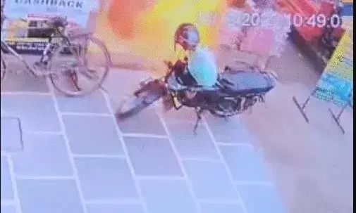 धमाके के साथ युवक के झुलसने की घटना से इलाके में अफरा तफरी मच गई।