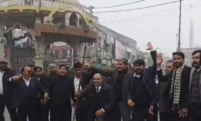 हाई कोर्ट की बेंच की मांग को लेकर आंदोलन के अंतर्गत सड़क पर उतरे वकीलों ने शहर के हृदय स्थल शिव चौक पर मानव श्रृंखला बनाते हुए पश्चिमी उत्तर प्रदेश में हाईकोर्ट की बेंच की मांग को जोरदार तरीके से उठाया है।