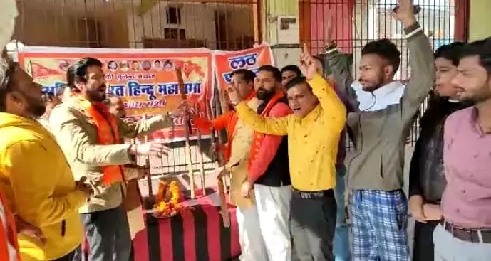 मुजफ्फरनगर। वैलेंटाइन डे के मौके पर होटल रेस्टोरेंट में पहुंचने वाले युवाओं की खबर लेने के लिए अखिल भारत हिंदू महासभा ने आज लठ पूजन कर कार्यकर्ताओं को निर्देश दिए कि वह पश्चिमी सभ्यता को बढ़ावा देते हुए सनातन संस्कृति के साथ खिलवाड़ करने वालों की लठ से खबर ले।