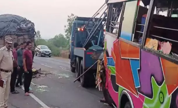 शनिवार को कर्नाटक के बागलकोट जनपद में बेंगलुरु- मैसूर एक्सप्रेस वे पर हुए बड़े हादसे में सड़क पर खड़े ट्रक से पैसेंजर को लेकर जा रही वैन टकरा गई।