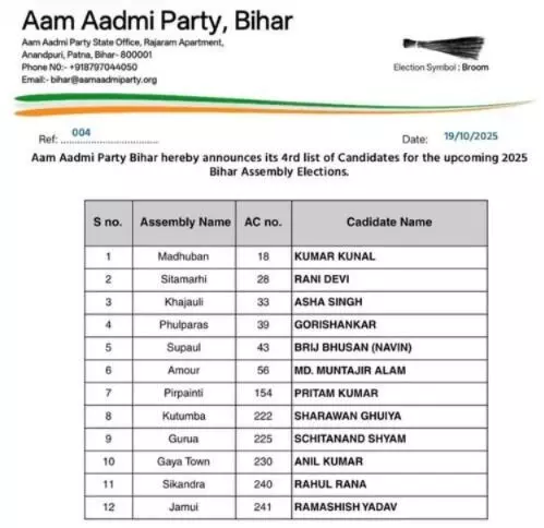 AAP ने बिहार चुनाव के लिए जारी की चौथी सूची-12 उम्मीदवारों के नाम घोषित
