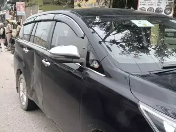 पूर्व मंत्री की गाड़ी में ओवरटेक करते कंटेनर ने मारी टक्कर-खुद गाड़ी..