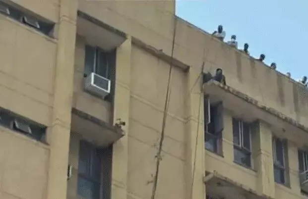 बताया जा रहा है कि नशे में टल्ली हुआ व्यक्ति अस्पताल के नौवें फ्लोर वाली बिल्डिंग के सबसे ऊपर वाले फ्लोर पर स्थित खिड़की के बाहर छज्जे पर बैठा हुआ है।।
