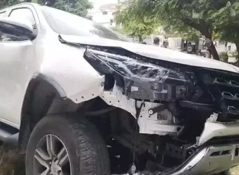 शुक्रवार को राजधानी लखनऊ के शालीमार गैलेंट चौराहे के पास हुए जोरदार हादसे में तेज रफ्तार फॉर्च्यूनर की टक्कर से बच्चों को लेकर स्कूल जा रही वैन का अगला हिस्सा पूरी तरह से क्षतिग्रस्त हो गया है। इस हादसे में घायल हुई दो स्टूडेंट ट्रीटमेंट के लिए अस्पताल में भर्ती कराई गई है। वैन में सवार सात अन्य बच्चे सुरक्षित मिले हैं, जिन्हें परिजनों के साथ उनके घर भेज दिया गया है।