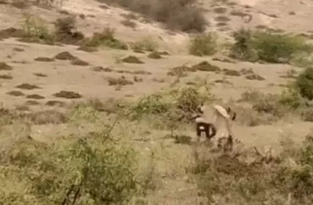 सवाई माधोपुर। झाड़ियों में घात लगाकर बैठे बाघ ने सीधे गर्दन पर अटैक करते हुए 3 मिनट के भीतर अपने शिकार सांड को मार गिराया है। यह हमला उस समय किया गया जब मवेशियों का झुंड चर रहा था।