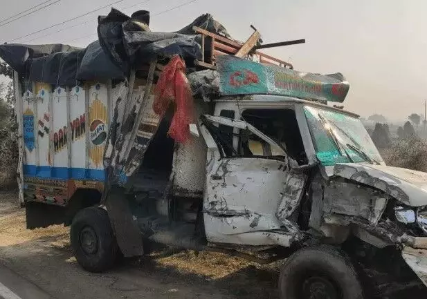 श्रद्धालुओं से भरी मैक्स में ईंटों से लदी ट्रैक्टर ट्राली ने मारी टक्कर