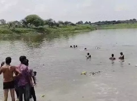 उज्जैन। विजयदशमी के मौके पर देवी प्रतिमा विसर्जन के दौरान हुए बड़े हादसे में श्रद्धालुओं से भरी ट्रैक्टर ट्रॉली चंबल नदी में गिर गई है। पानी में डूबे आठ लोगों में से पांच को दौड़ धूप कर बचा लिया गया है, तीन लोग अभी लापता है, जिनकी खोज का अभियान चल रहा है।