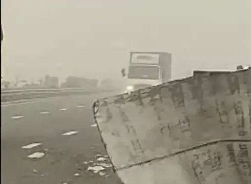 एक्सप्रेस वे पर हादसा- बीफ भरी पिकअप पलटी-सड़क पर फैला मांस