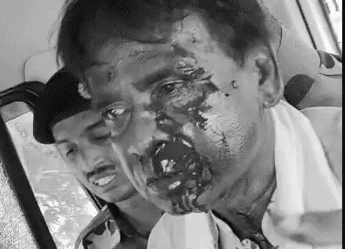 इस दौरान उनके चेहरे से लगातार बह रहे खून से उनका सफेद कुर्ता और गमछा भी खून से लाल हो गया।