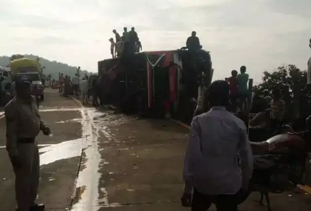 नर्मदा परिक्रमा को जा रही श्रद्धालुओं की बस पलटी- 30 से भी ज्यादा..