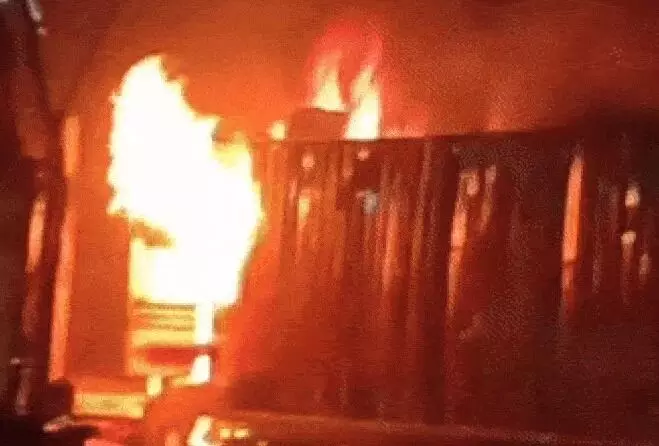 चीनी मिल के यार्ड में अफरातफरी- खड़े ट्रक में लगी आग