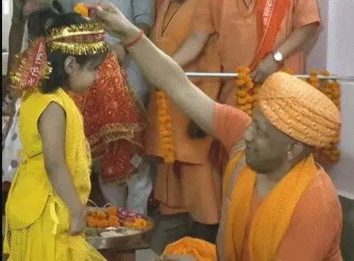 महानवमी पर CM योगी ने किया कन्या पूजन- पांव धोकर लिया आशीर्वाद