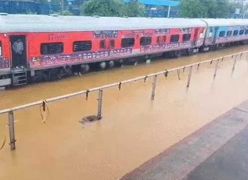 मोंथा तूफान से तबाही-डूबा स्कूल, ट्रक कार बहे-रेलवे स्टेशन पर भरा पानी