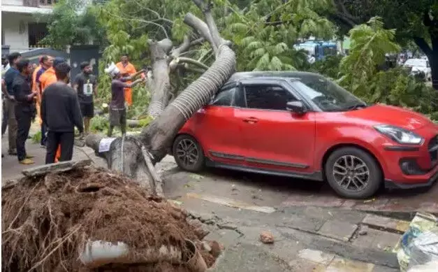 मोंथा चक्रवात का असर-कार एवं ऑटो पर गिरा पेड़-स्टेशन पर काटनी पड़ी रात