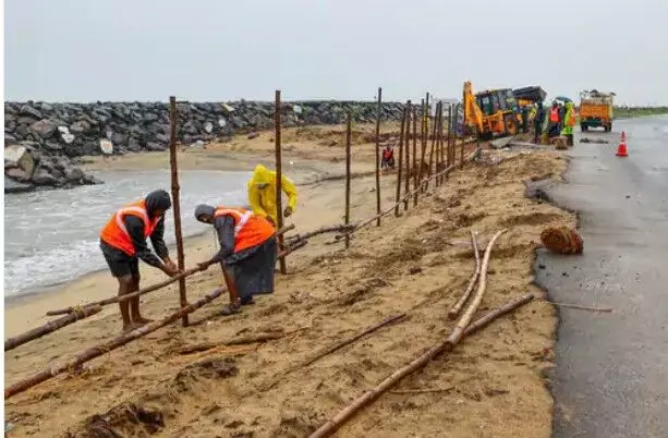 विशाखापट्टनम में चली तेज आंधी के दौरान पेड़ गिरने से कार क्षतिग्रस्त हो गई है। ऑटो पर पेड़ गिरने के साथ ही मलबा भी गिरा है। आंध्र प्रदेश के काकीनाडा में बनाए गए रिलीफ कैंप में लोगों को तूफान से बचाकर लाया गया है।