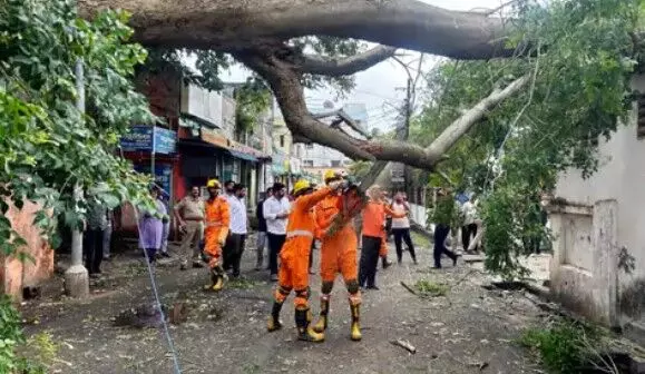 आंध्र प्रदेश में हुई पेड़ गिरने की घटना में सड़क पर जा रही कार एवं ऑटो के ऊपर पेड़ गिरने से चारों तरफ बुरी तरह से अफरातफरी मच गई है। विशाखापट्टनम में कई स्थानों पर जमीन पर खड़े पेड़ उखाड़ कर पृथ्वी पर गिर गए हैं। पहले से अलर्ट एनडीआरएफ की टीमों ने मौके पर पहुंचकर गिरे पेड़ों को काटकर मौके से हटाया है।