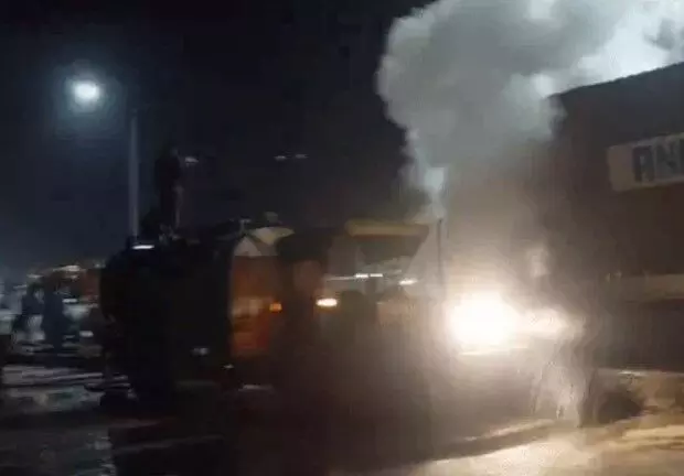 नेशनल हाईवे पर कंटेनर में लगी आग- धमाकों से डरे अन्य गाड़ी चालक
