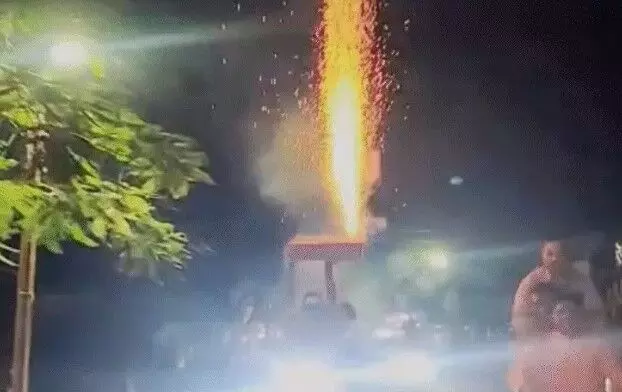 शाजापुर में इससे भी बढ़कर अंजाम दिए गए कारनामे में दो बाइक पर सवार होकर 6 युवक पटाखों का बॉक्स लेकर जा रहे हैं। एक बाइक पर बीच में बैठे शख्स ने हाथ में पटाखे का बॉक्स लिया और उसे अपने कंधे पर उठा लिया। इस दौरान बाॅक्स से फुटकर पटाखे आसमान की तरफ जाते देख रहे हैं।