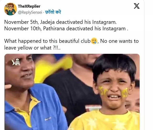 जडेजा एवं पथिराना इंस्टाग्राम से अपना अकाउंट लेकर हुए गायब- सीएसके..
