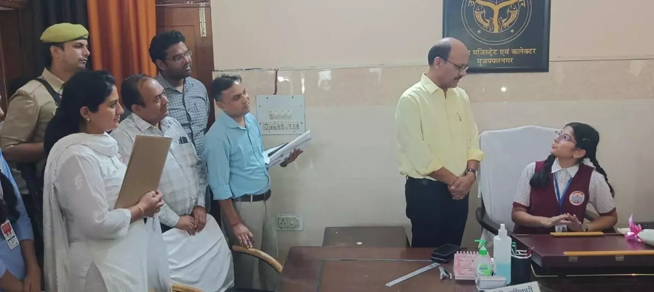 मिशन शक्ति 5.0 अभियान के अंतर्गत महिला सशक्तिकरण की दिशा में गुरुवार का दिन ऐतिहासिक बन गया, जब एम.जी. पब्लिक स्कूल में कक्षा नौ में अध्ययनरत छात्रा मैत्री शर्मा को एक दिन के लिए मुजफ्फरनगर की जिलाधिकारी बनने का खास अवसर मिला। इसके साथ ही एम.जी. पब्लिक स्कूल की ही दो अन्य छात्राओं अनन्या जोशी और अक्षिता को जिला प्रोबेशन अधिकारी बनने का अवसर मिला। यह पहल प्रशासन और समाज के साझा प्रयासों का प्रतीक बन गई है, जिसमें बेटियों को न केवल आत्मविश्वास, बल्कि नेतृत्व की भूमिका में भी देखा जा रहा है। इस विशेष अवसर पर कलेक्ट्रेट स्थित डीएम कार्यालय पर पहुंची छात्रा मैत्री शर्मा जब डीएम की कुर्सी पर बैठी और अन्य छात्राओं अनन्या व अक्षिता ने भी प्रशासनिक दायित्व संभाला तो यह दृश्य प्रशासनिक गरिमा और महिला सम्मान की दिशा में उठाए गए कदम का सजीव उदाहरण बना।