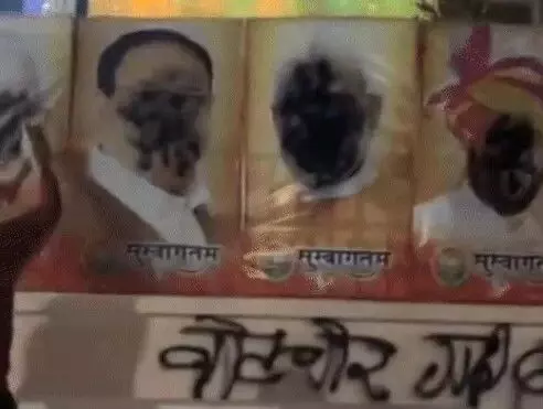 पीएम एवं सीएम के पोस्टर पर पोती कालिख- लिखा वोट चोरी गद्दी छोड़