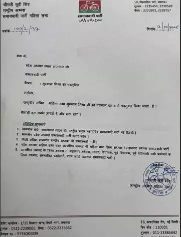 मंगलवार को समाजवादी पार्टी की ओर से की गई कार्यवाही के अंतर्गत पार्टी की महिला विंग की राष्ट्रीय सचिव मुस्कान मिश्रा को उनके पद से हटा दिया गया है।