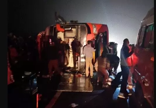 एक्सप्रेस वे पर पलटी स्लीपर बस- सीटें काटकर निकाले यात्री- कई मरे