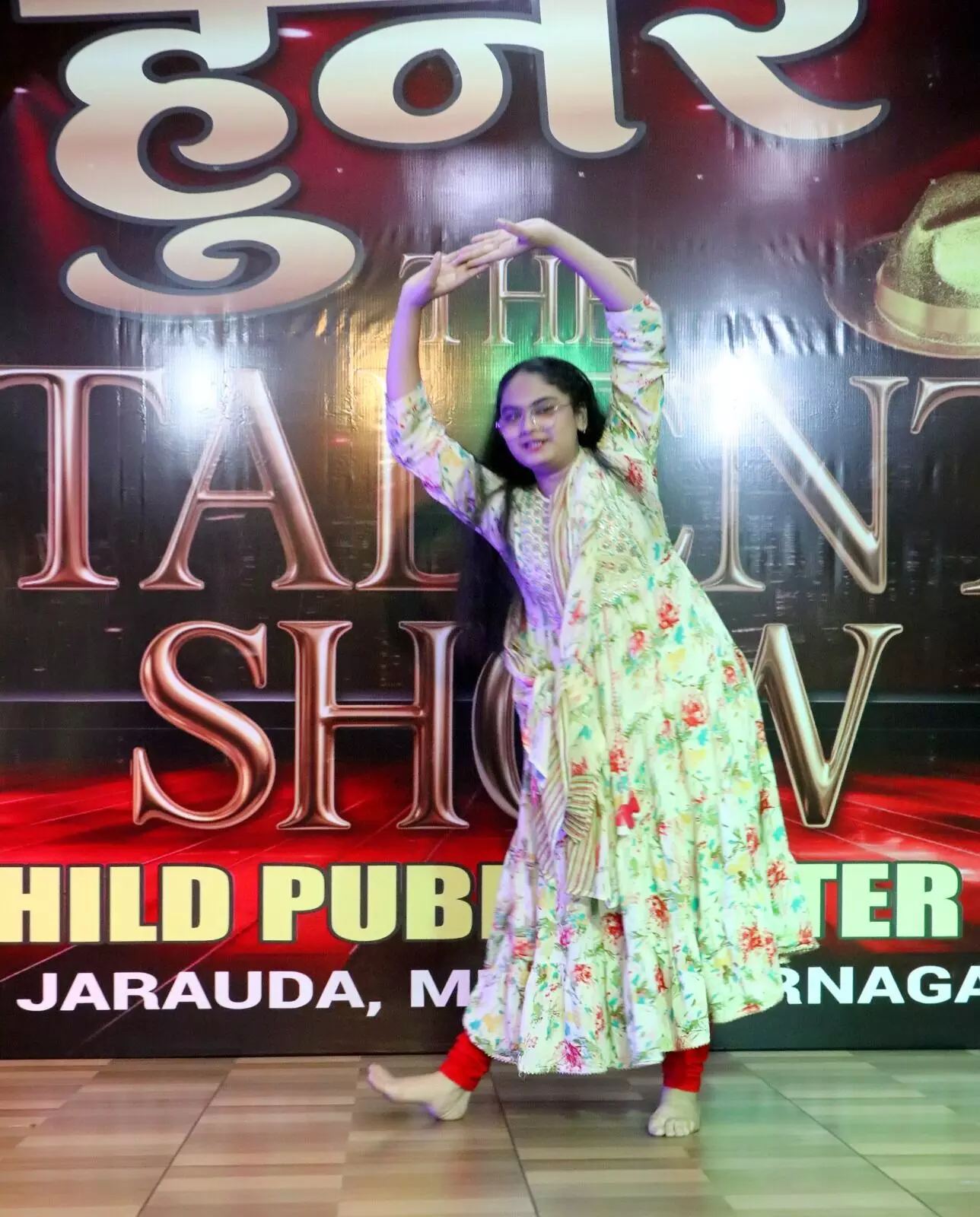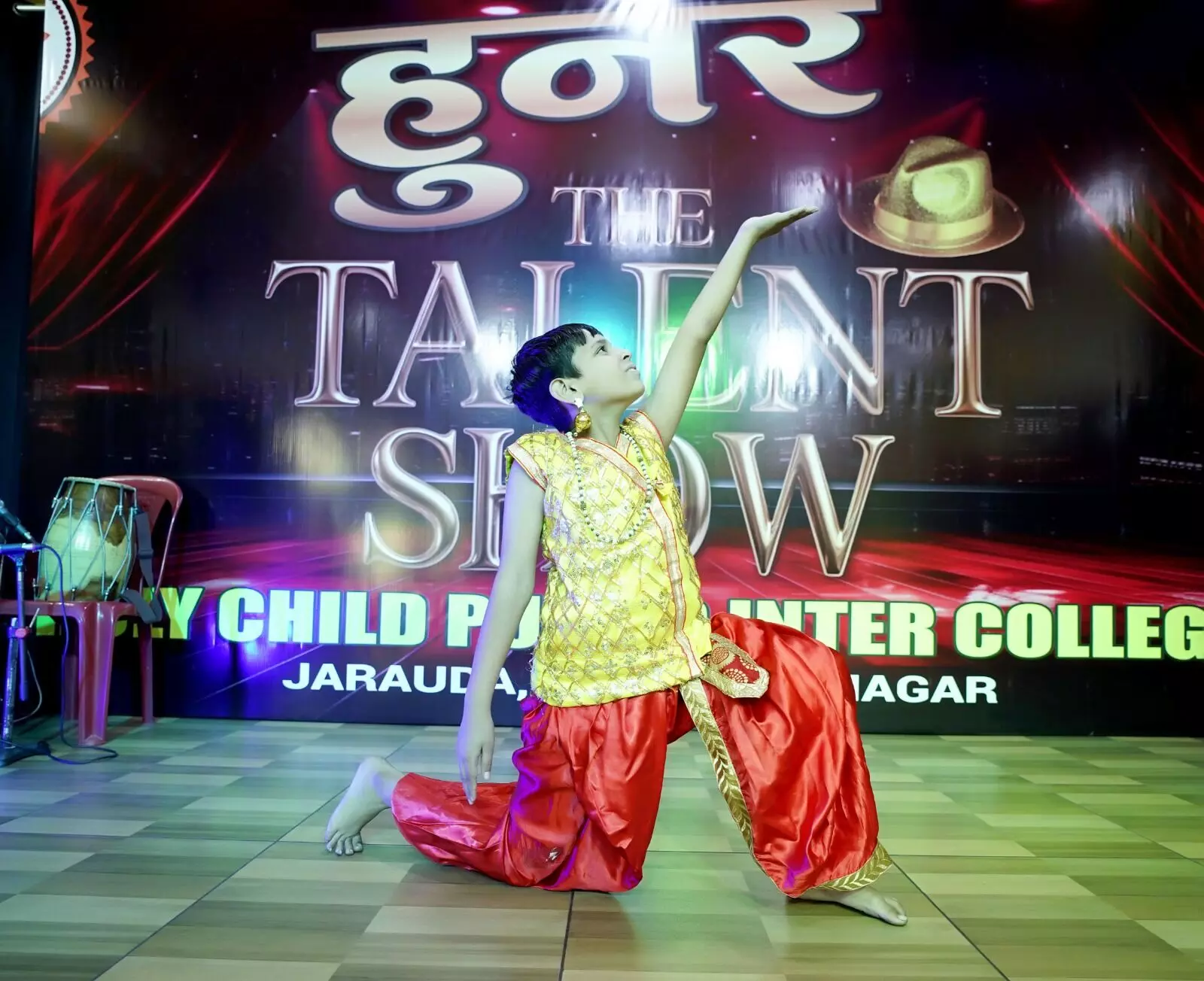 हुनर ‘द टैलेन्ट शो’ में विद्यार्थियों ने सामूहिक नृत्य में मैय्या यशोदा, मिश्री सी बातें, हरियावी गीत मेरा चुनर मांगे दें, गीतों में आदमी खिलौना है, हारे के साहरे, मार्शल आर्ट, वाद्य यंत्र एवं एकल नृत्य में फरहान, बरीरा, मिष्ठी, यशस्वी, वेदांशी, सोनाक्षी, वृन्दा, मोनिका, परी, एंजी, मेहविश, रिया धीमान, मानवी, यश, रिहान, वैष्णवी, अनन्त, नक्ष, ओम, हनी, रूद्र, अंजूमन आदि विद्यार्थियों ने शानदार प्रदर्शन किया।