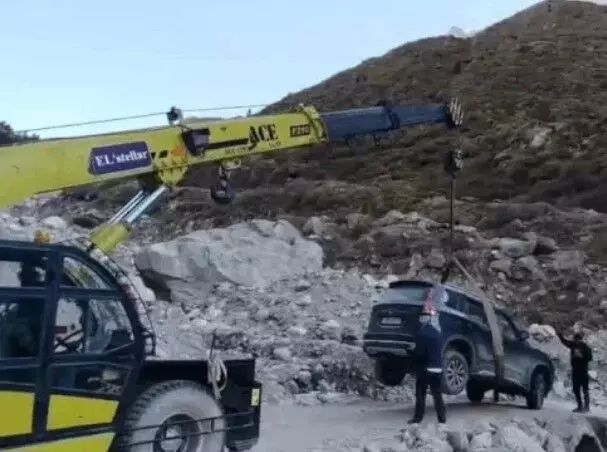 खाई में फंसी एक्सयूवी अंदर से हुई लॉक- पुलिस को फोन कर बुलाया
