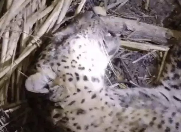 भैंसों के तबेले में मरा मिला तेंदुआ शनिवार की सवेरे कालू नाला वन्य क्षेत्र से निकल कर गांव की तरफ आया था और उसने नेवाडा के भैंदपुर और बिराईपुर गांव में पांच लोगों को हमला करके अपना आतंक मचा दिया था।