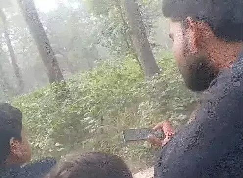 पहली बार जंगल सफारी पर गए बच्चे बाघ को देखने की जिद कर रहे थे, दोपहर के समय जब झाड़ियों में हलचल दिखाई दी तो जिप्सी के ड्राइवर ने गाड़ी की रफ्तार धीमी कर दी। इसी दौरान बाघ को देखकर जिप्सी में सवार बच्चे अपना मोबाइल निकाल कर वीडियो शूट करने लगे।