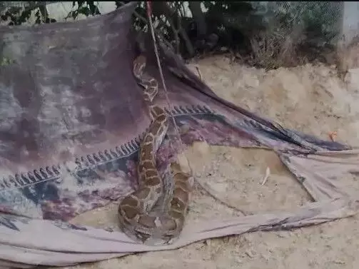 गौशाला में अजगर निकलने से ग्रामीणों में मचा हड़कंप- वन विभाग